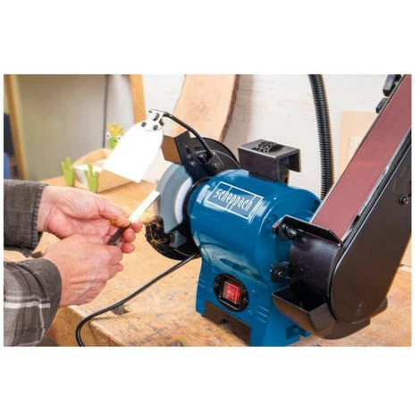 Präsentation : Mischschleifmaschine SCHEPPACH 370W – BGS700, mit dieser Schleifmaschine ist es einfach, Metall, die meisten Kunststoffe und Nichteisenmetalle zu schleifen und zu entgraten.
