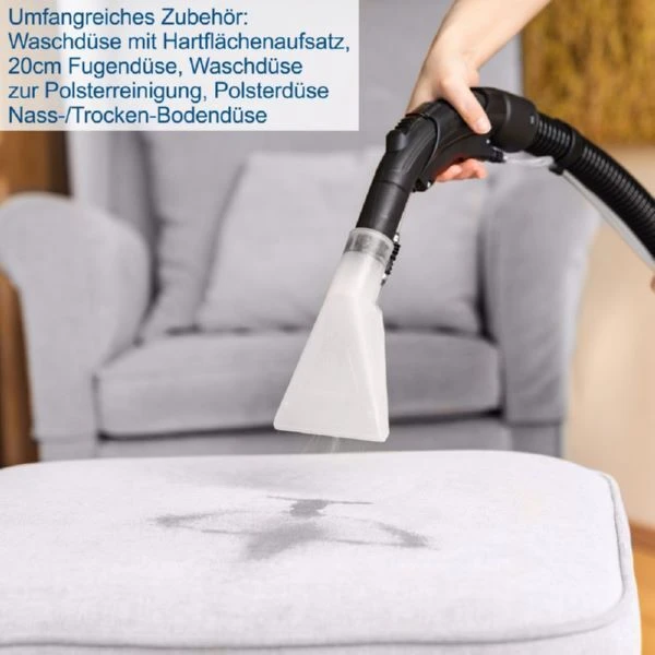 - Inkl. Waschdüse zur Polsterreinigung und Waschdüse mit Hartflächenaufsatz