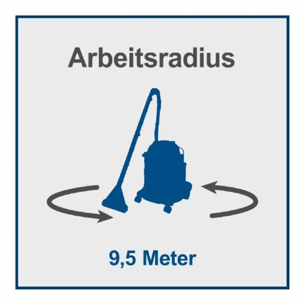 - Großer Arbeitsradius dank 2 m Kunststoffschlauch und 7,5 m Kabellänge