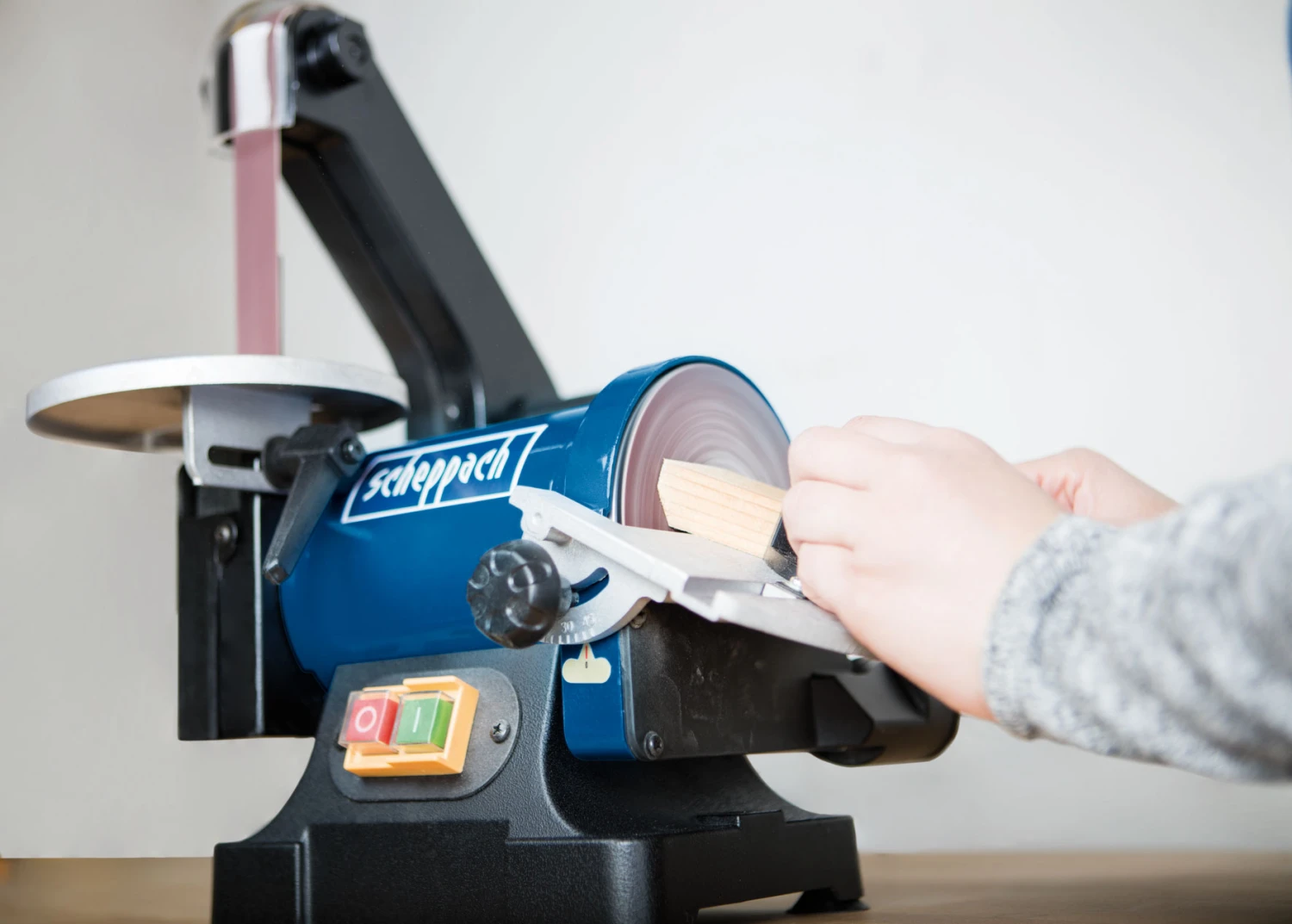 Scheppach Band- und Tellerschleifer BTS700 – Kompakte Band- und Tellerschleifmaschine für den anspruchsvollen Modellbauer, Handwerker und die Hobbywerkstatt. Mit dieser vielseitigen Kombination aus Band- und Tellerschleifer gehen die verschiedensten feinsten Schleifarbeiten an Holz, vielen Kunststoffen und Holzähnlichen Stoffen kinderleicht von der Hand.
