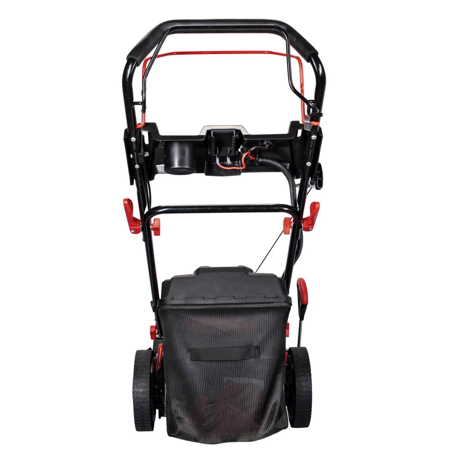 Lieferumfang: 1 x Benzin-Rasenmäher, 2 x Rundkopfschraube M8, 2 x Beilagscheibe groß, 4 x Beilagscheibe klein, 4 x Kunststoffsternmutter, 1 x Kabelclip, 4 x Schraube, 4 x Klettband, 1 x Bedienungsanleitung