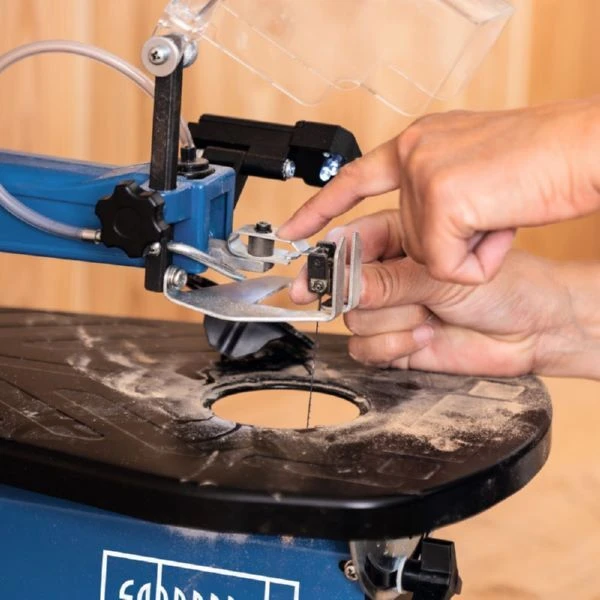 Maschinenlaufs über Fußpedal - Aufnahme von Stiftsägeblättern und Standard-Laubsägeblätter