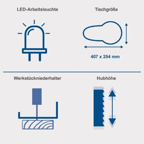 Dekupiersäge Durchmesser 405 mm inklusive Variabler Drehzahl LED und Fußpedal