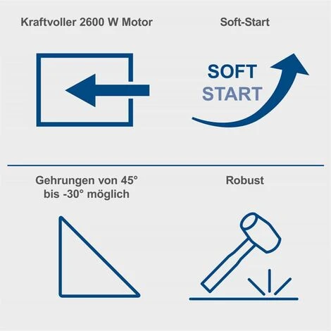 - Neigungswinkel 0-45° für Gehrungsschnitte