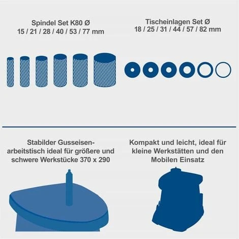 - Großer, solider Grauguss-Arbeitstisch für höchste Präzision und Stabilität, auch bei der Bearbeitung größerer Werkstücke