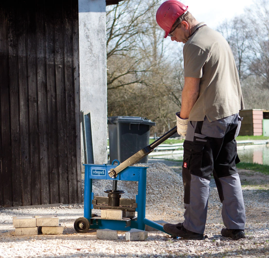 Der Scheppach Steintrenner HSC130, auch Steinknacker genannt, hilft bei Pflasterarbeiten ungemein. Er trennt mit einer geraden Kante mühelos Pflastersteine oder Platten. Durch den Teleskophebel sind keine großen Anstrengungen erforderlich.