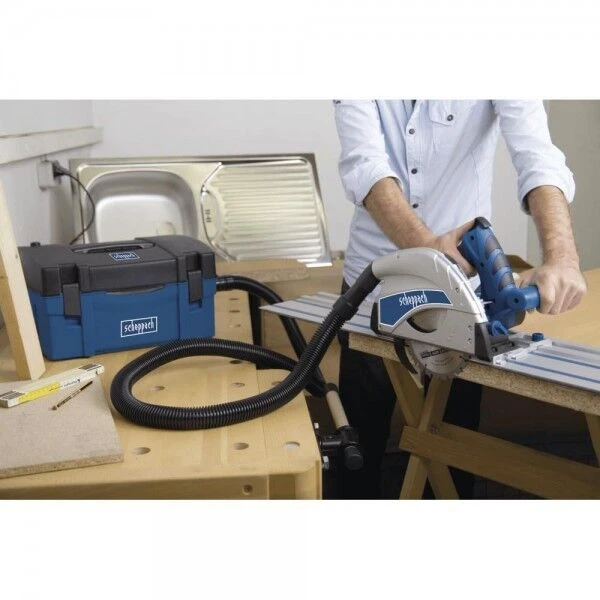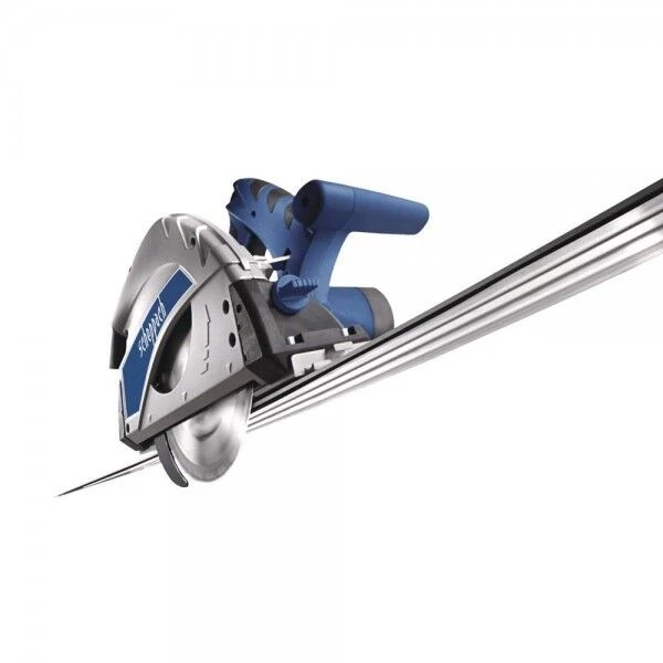 DIE KOMBINATION AUS DER SCHEPPACH PL55 TAUCHSÄGE UND DER FÜHRUNGSSCHIENE AUS ALUMINIUM SCHAFFT EIN SYSTEM FÜR PRÄZISE SCHNITTE, WELCHE MIT EINER HANDKREISSÄGE NIEMALS MÖGLICH WÄREN.