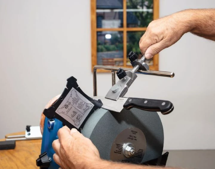 - Winkellehre zur Einstellung des korrekten Schleifwinkels